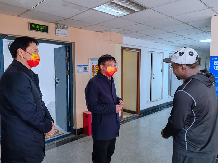 梅乐堂一行还来到留学生公寓,亲切看望了寒假留校的来华留学生,详细询问了他们的学习、生活、饮食休息等情况,希望他们合理安排好假期计划,有任何困难第一时间联系学校老师,并祝福来华留学生新年快乐、学习进步、身体健康。(供稿:张宇审稿:任枫轩)