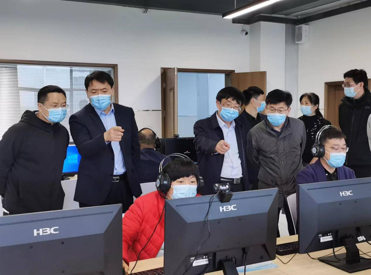 4日14日下午,校长梅乐堂检查指导学校2022年单独招生考试线上模拟测试工作。校工会主席夏喜利,教务处、招生就业处、信息中心、数字创意与设计学院和音乐学院等相关负责人陪同。