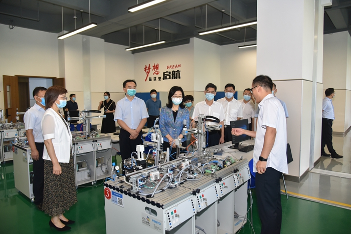 毛杰一行先后实地调研了学校的创客空间、大数据双创基地、智能制造格力学习工厂、智能制造综合实训室、文化旅游学院智能餐厅实训室、茶艺实训室、智慧健康学院实训室等教育教学场所,每到一处,都与教师和学生亲切交谈,详细询问,深入了解学校人才分类培养、教学改革、创新创业、实训条件、技能大赛等情况。
