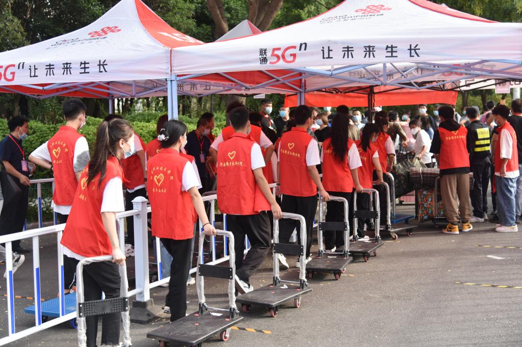 9月19日至20日,河南职院如期迎来了2022级6900多名新生。校园里彩旗飘飘,人声鼎沸,处处是贴心的提醒标牌、忙碌的“志愿红”、滚动的“助力小推车”……整个场面欢快喜庆,井然有序。