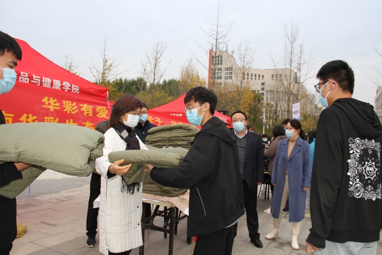 受疫情影响,学校快递物流暂停,部分学生缺少过冬御寒衣物,河南华彩生态农业有限公司在获悉学校这一情况后,迅即筹集价值10余万元的棉衣630件、棉被400件,向学校进行了捐赠。11月12日下午,校党委书记李桂贞亲自将企业捐赠的棉衣、棉被等物资分发给部分急需的学生。