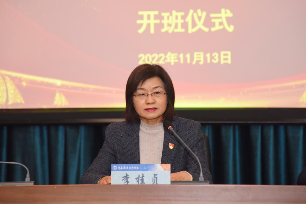 李桂贞强调,全体学员不仅要从习近平新时代中国特色社会主义思想中汲取感悟真理力量,用党的科学理论武装头脑,更要像广大河职优秀学子那样,发扬“河职精神”,坚持“敢”字当头,以初生牛犊不怕虎、越是艰险越向前的刚健勇毅,扛起新一代中华儿女如山的青春责任。