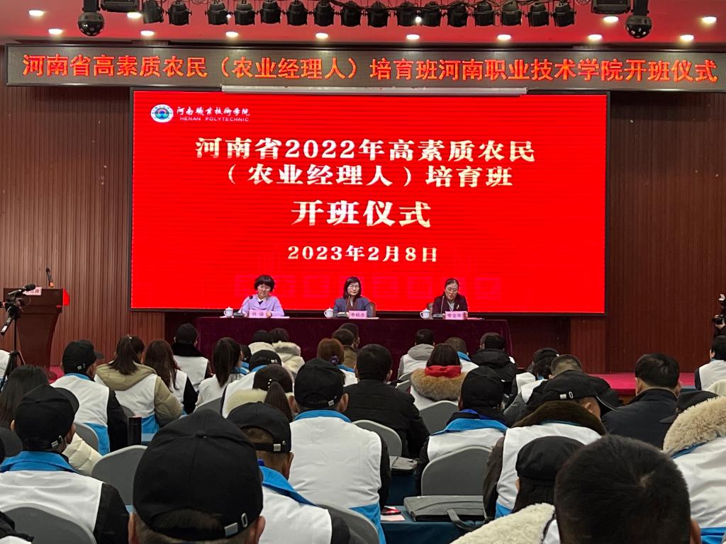 2月8日上午,河南职院承办的2022年高素质农民(农业经理人)培育班在省农科院现代农业研究开发基地开班。校党委书记李桂贞、中原出版传媒集团副总裁李文平出席开班仪式并讲话。继续教育与培训中心、中原农民出版社相关负责人和来自各市、县农业经营主体负责人、创业致富带头人近200名学员参加开班仪式。仪式由副校长肖珑主持。