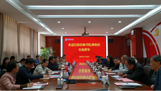 夏子厚对我校信息化建设特色创新及取得的成绩表示赞赏,并介绍了信阳技师学院基本情况。他希望,双方要建立长效沟通机制,不断就信息化建设、校园建设等工作相互交流学习,实现共同提升。