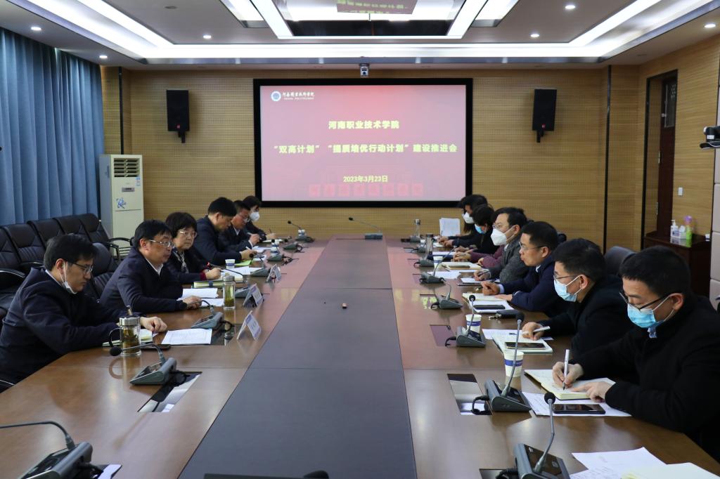 3月23日上午,河南职院召开“双高计划”和“提质培优行动计划”建设工作推进会。校长梅乐堂、副校长肖珑出席会议。各项目牵头部门及相关建设部门负责人参会。肖珑主持会议。