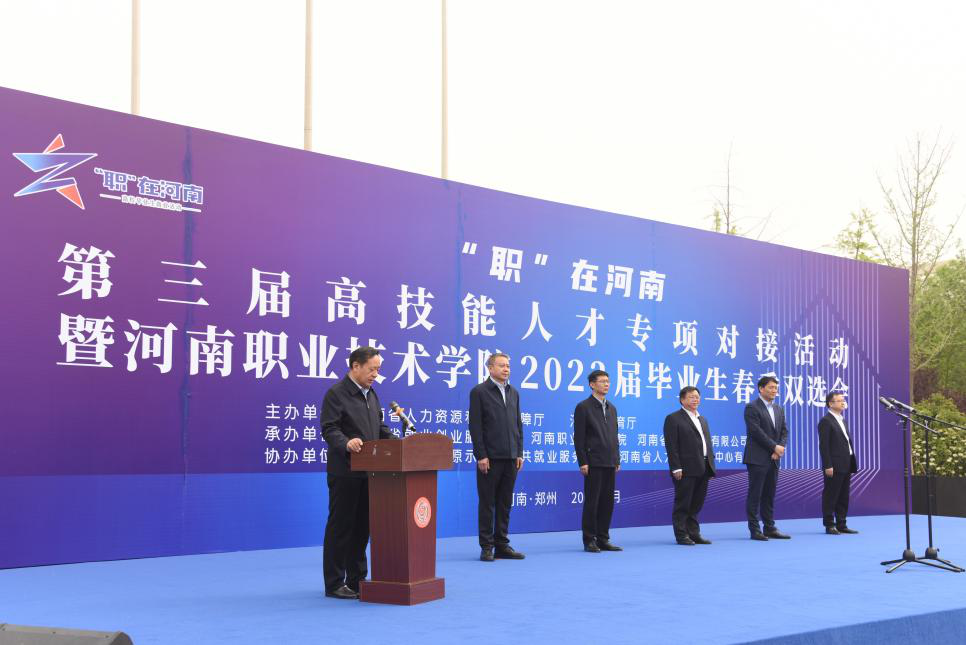 4月11日,“职”在河南第三届高技能人才专项招聘会暨河南职院2023届毕业生春季双选会在学校明湖广场举办。中信重工机械股份有限公司等365家省内用人单位来校招聘,提供各类就业岗位2万余个。学校万余名学生参加招聘会,达成初步就业意向3774人。