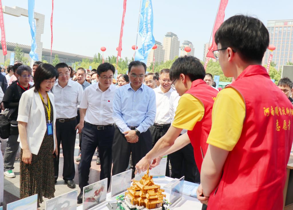 5月14日上午,2023年河南省暨许昌市职业教育活动周启动仪式在许昌市举行。省委教育工委专职副书记尹洪斌等领导出席启动仪式。来自全省各地职业院校、技工学校、教育局等54个单位代表800余人参加启动仪式。河南职院作为国家优质高职学校代表应邀参展,校党委书记李桂贞、副校长肖珑参加启动仪式。
