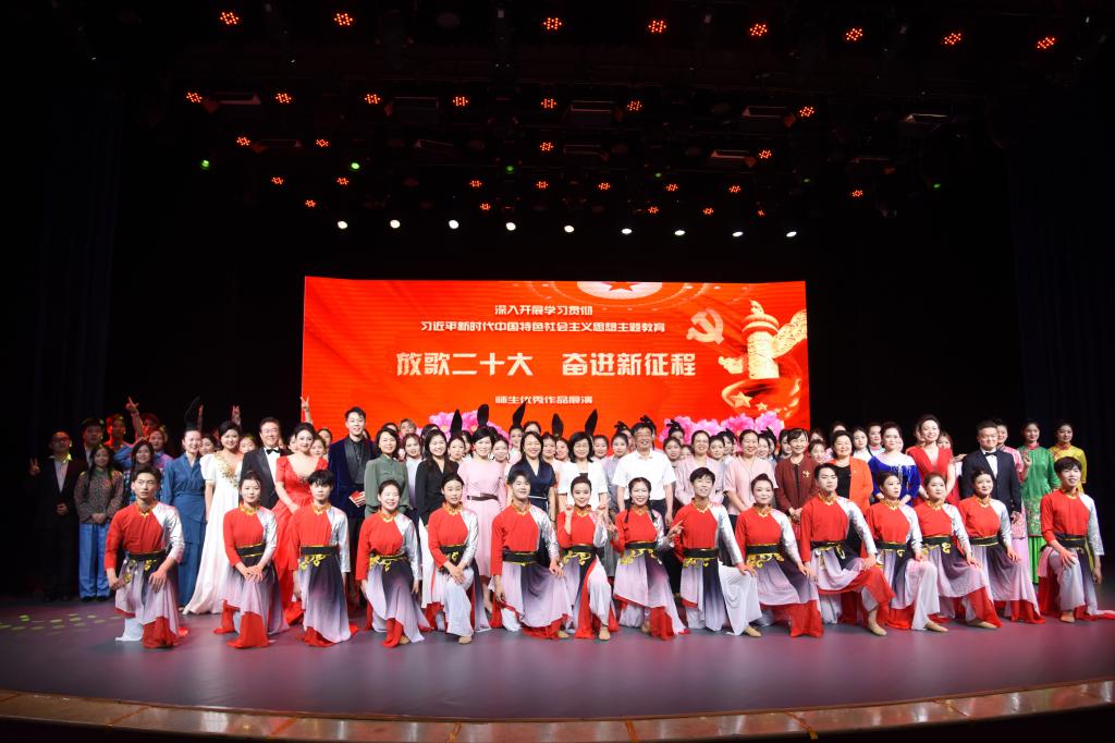 5月24日下午,河南职院深入学习贯彻习近平新时代中国特色社会主义思想主题教育--“放歌二十大 奋进新征程”师生优秀作品展演活动在音乐厅举行。校党委书记李桂贞、校长梅乐堂等校领导,河南艺术职业学院戏剧学院院长芦珊等兄弟院校和郑州市郑东新区实验幼儿园园长马灵君等校企合作单位领导、专家,学校中层副职及以上干部、师生代表共500余人观看了展演。