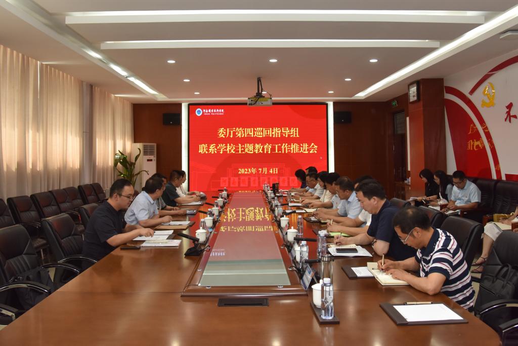 7月4日下午,委厅主题教育第四巡回指导组联系学校学习贯彻习近平新时代中国特色社会主义思想主题教育工作推进会在河南职院召开,总结交流了主题教育前一阶段开展情况、典型经验做法,并安排部署了下一步工作。省委教育工委、省教育厅组织干部处处长、一级调研员冯轩友,委厅主题教育第四巡回指导组组长刘卫锋出席会议并讲话。委厅主题教育第四巡回指导组全体同志以及联系指导的新乡工程学院、安阳学院、bat365官网登录入口等9所学校党委书记及联络员参加会议。会议由第四巡回指导组副组长曹相智主持。