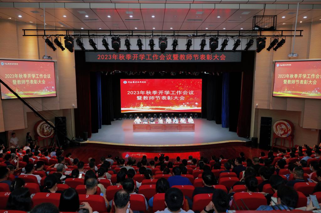 9月7日下午,河南职院在音乐厅召开2023年秋季开学工作会议暨教师节表彰大会,对学校做出突出贡献的先进集体和个人进行了表彰。校党委书记李桂贞出席并讲话,校长梅乐堂作2023年秋季工作报告。学校领导班子成员、中层副职以上干部、教师代表参加会议。会议由党委副书记、纪委书记田华主持。
