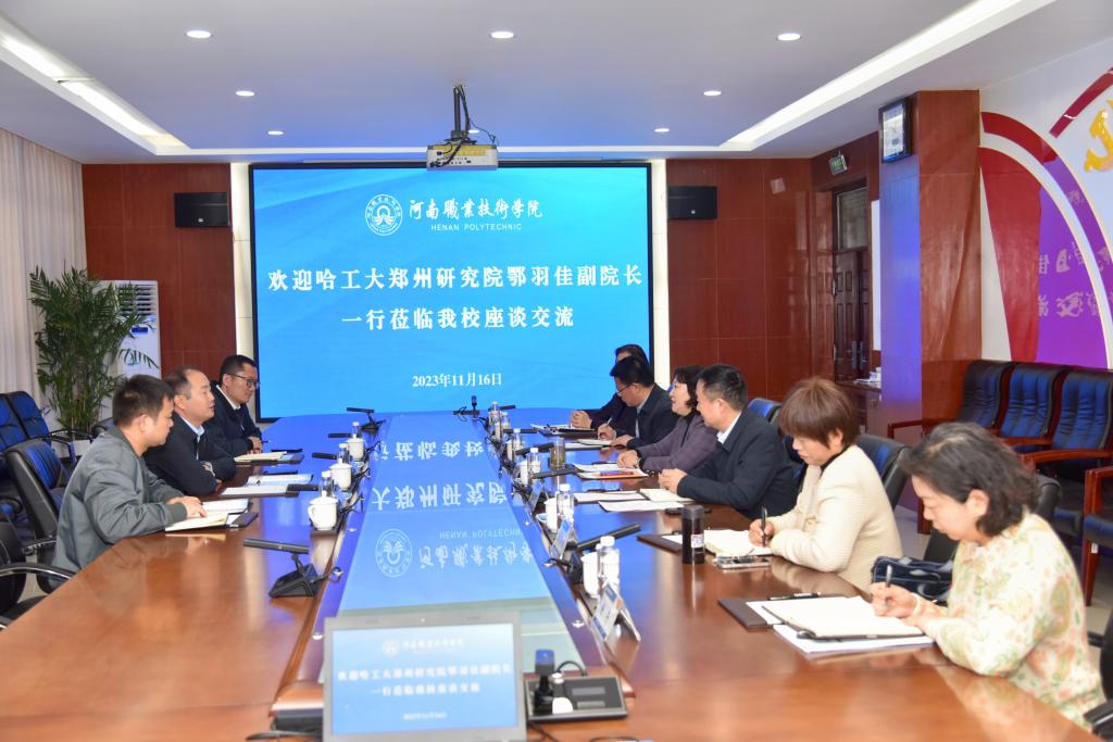 11月16日上午,哈工大郑州研究院副院长鄂羽佳一行来校交流。校长夏新颜、副校长李玉峰出席座谈会。发展规划处、科技开发处、创新创业中心、智能制造学院等相关单位负责人参加座谈。
