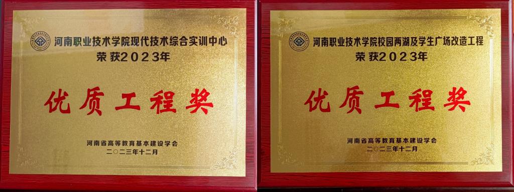 近日,河南省高等教育基本建设学会2023年年会在平顶山市闭幕。学校申报的“两湖及学生广场改造工程”和“现代技术综合实训中心工程”项目,顺利通过评审,荣获2023年高校优质工程奖。同时,学校被增补为副秘书长单位,基本建设处处长张燕祥被选为副秘书长。