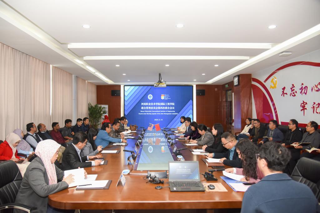 3月15日上午,马来西亚国民大学国际教育部主任Dr. MUHAMMAD BIN HUSSIN一行8人来校考察访问,双方组织召开国际工程学院联合管理委员会第四次工作会议。校长夏新颜,校党委副书记、纪委书记田华,副校长任枫轩出席会议。国际合作交流处、智能制造学院、电子与物联网学院、现代信息技术学院相关人员及目前来校担任教学任务的国民大学教师参会。会议由任枫轩主持。