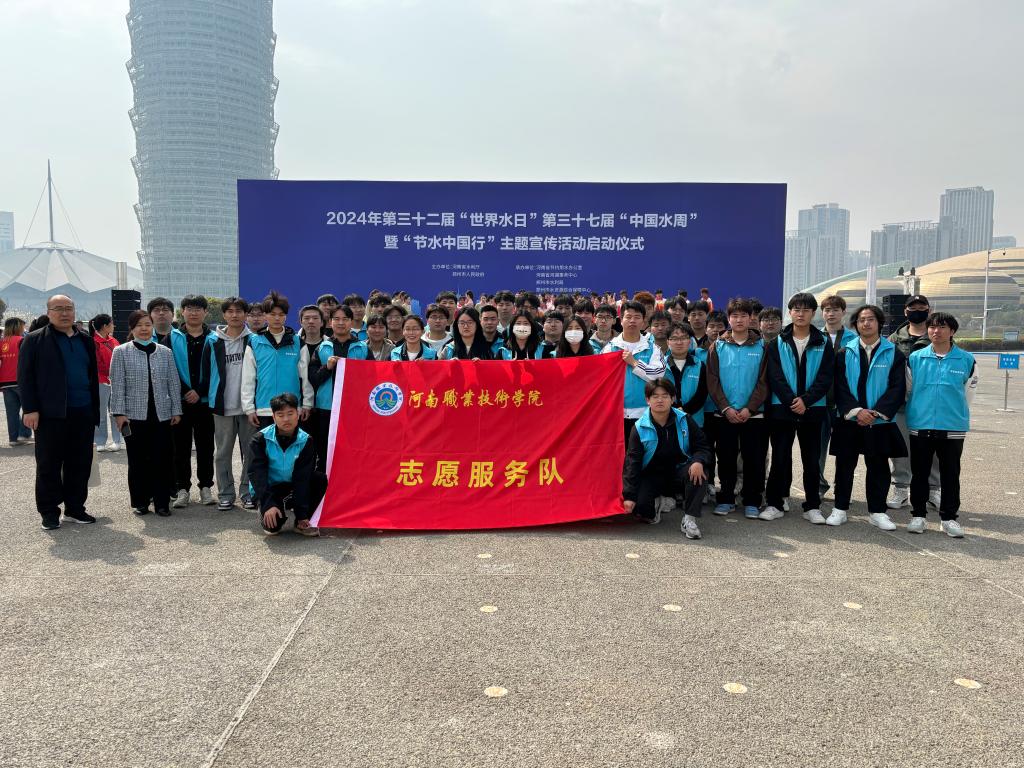 3月22日上午,2024年第三十二届“世界水日”第三十七届“中国水周”暨“节水中国行”郑州分会场主题宣传活动在郑东新区如意湖文化广场举行。学校作为全国“公共机构水效领跑者”单位受邀组织志愿服务方队参加了宣传活动。