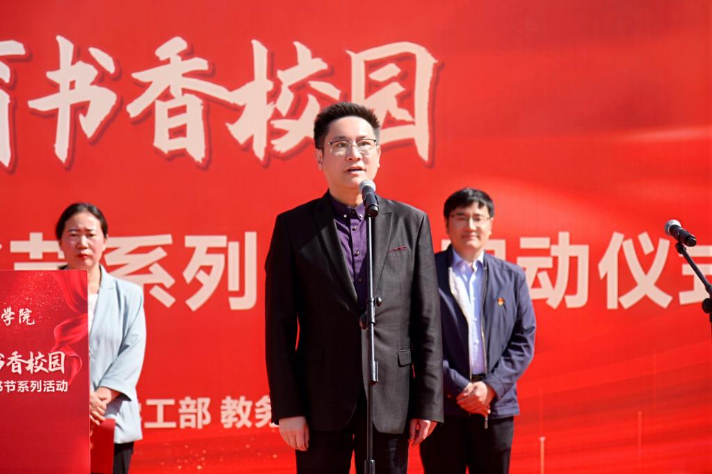 夏新颜在致辞中介绍了学校全民阅读工作开展情况,并对学校书香校园建设工作提出殷切希望。她指出,学校要以此次读书节系列活动为契机,持续推进全民阅读工作,强化思想引领、培根铸魂,着力打造特色鲜明、亮点突出,更加契合师生需求的阅读推广活动品牌,建优建强学校阅读推广及信息素养学习平台,不断掀起学校全民阅读新热潮、新风尚,共同打造书香校园,努力推动学校高质量发展。