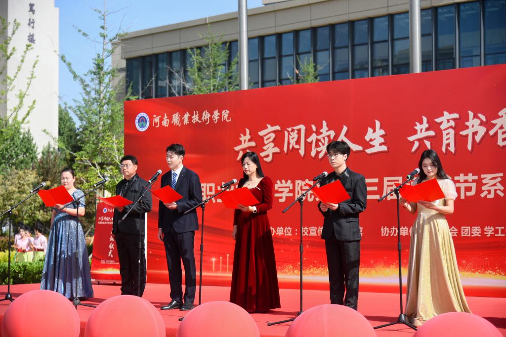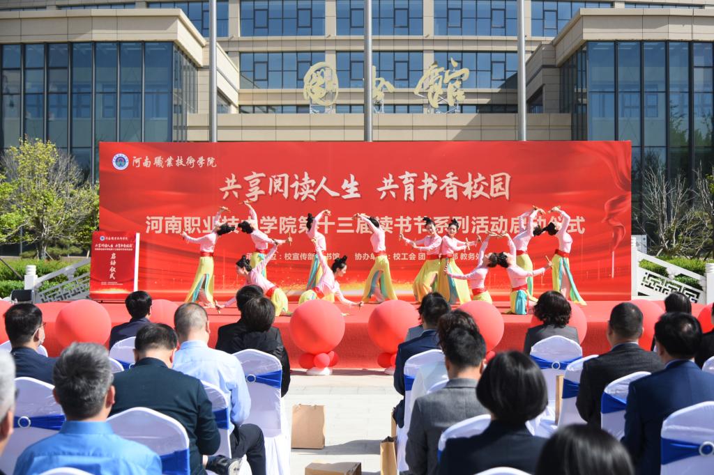 学生代表王曌滢在发言中分享了读书所感、所悟,表达了愿与河职学子一起共建书香校园的愿望;铿锵有力的配乐朗诵节目《密码》及书法展示、充满中原文化底蕴的舞蹈节目《珏》,展示了开幕式爱国和青春的底色。