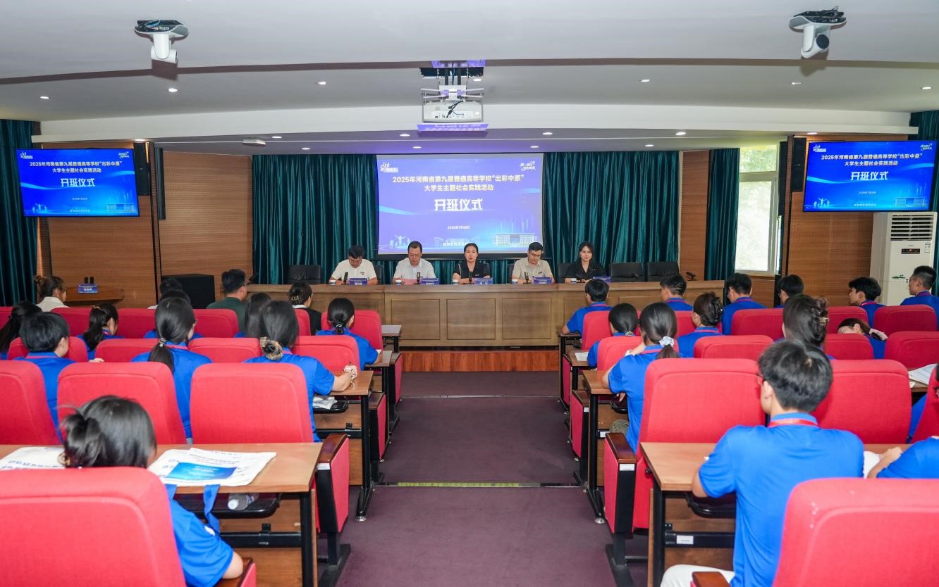 7月28日下午,河南省第九届普通高等学校“出彩中原”大学生主题社会实践活动之2025年“逐光而行 智创未来”创新创业实践活动开班仪式在学校勤业楼238会议室举行。校党委副书记、工会主席田华,校党委委员、副校长任枫轩出席仪式。党委学生工作部、创新创业学院相关负责人及来自全省31所高校的100名学生参加仪式。