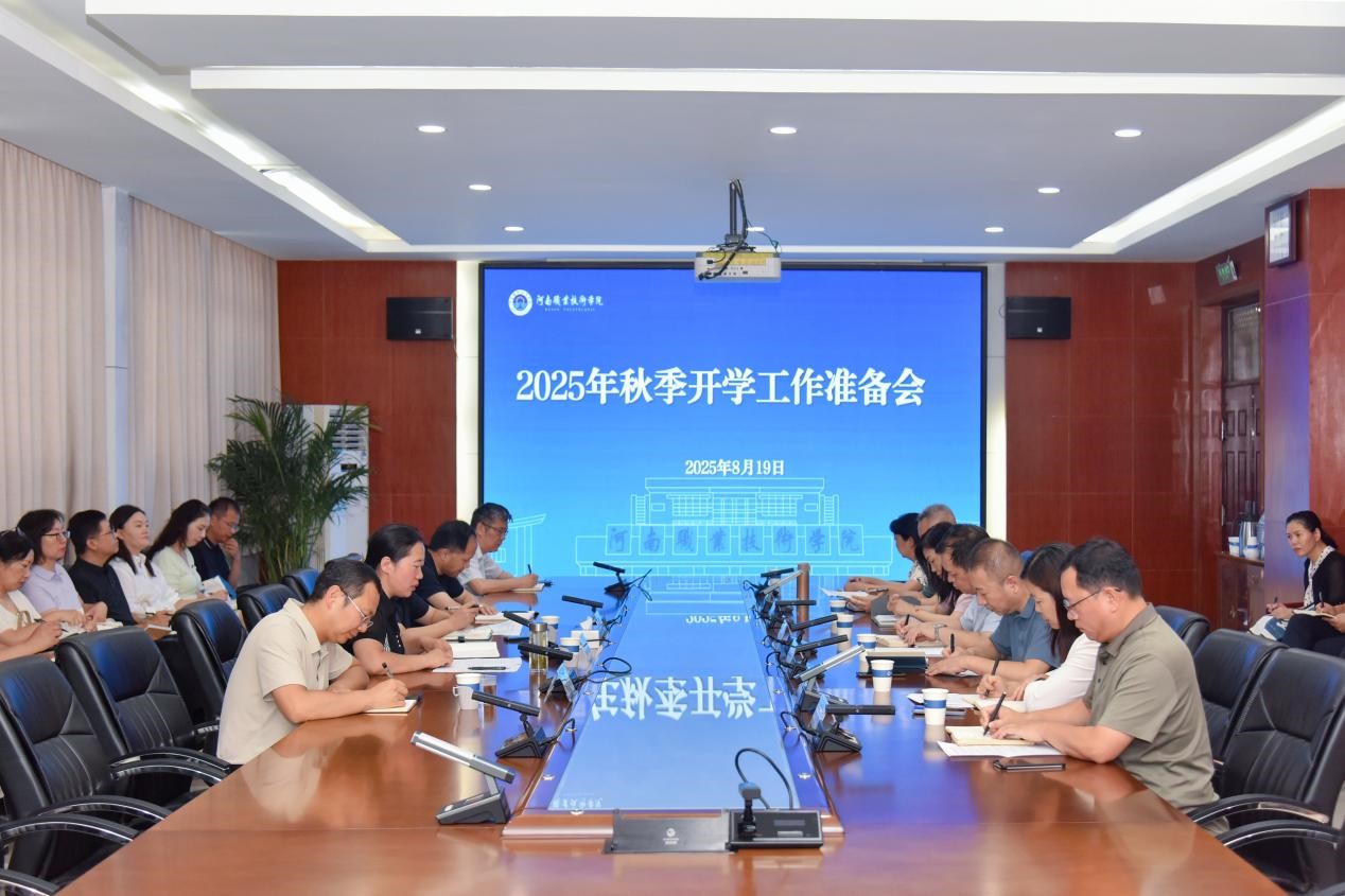 8月19日上午,学校召开2025年秋季开学工作准备会,深入分析研判开学前后各类风险隐患,并对开学工作进行安排部署。校领导田华、任枫轩、朱永宽出席会议。各相关职能部门负责同志及各二级学院党总支书记、院长参会。会议由校党委副书记、工会主席田华主持。