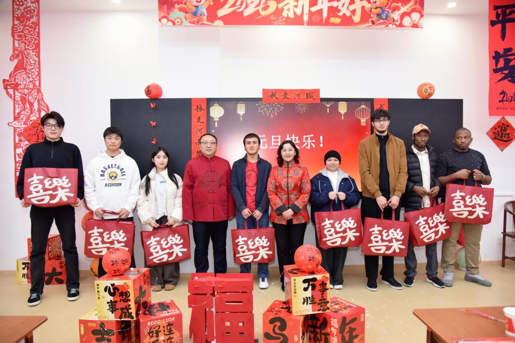 2025年12月31日下午,校党委副书记、校长夏新颜来到健行楼参加国际教育学院举办的“豫韵迎新春,同心向未来”中外文化交流活动,与中外师生共迎新年、共话情谊、共向未来。校党委委员、副校长鲁冬及学院中外师生代表一同参加。