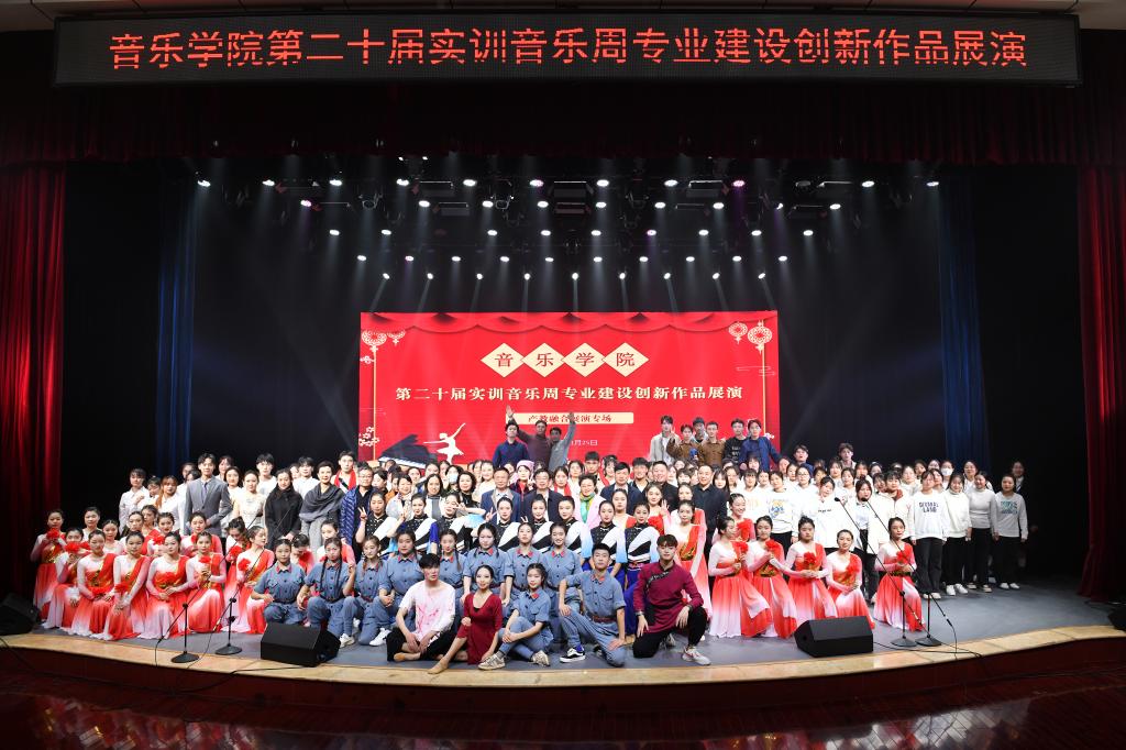 11月25日下午,音乐学院“赓续红色血脉 绽放青春光彩”第二十届实训音乐周专业建设创新作品展演活动在音乐厅举办。校长梅乐堂、副校长李玉峰,相关部门负责人及音乐学院全体师生一同观看了展演。