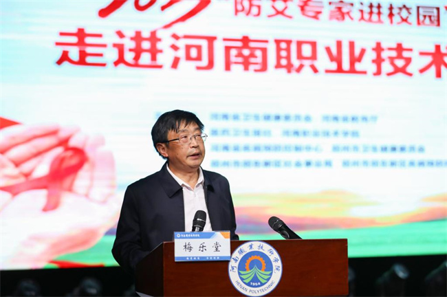 梅乐堂在致辞中指出,学校高度重视公共卫生安全和健康教育工作,建立了全面科学的公共卫生安全工作领导制度和工作机制,开展了形式广泛的宣传和教育活动,提高了防艾宣教工作的覆盖面与针对性,有效保护了学校师生的身心健康。他号召青年师生积极学习防艾科普知识,增强自我保护能力,自重自爱、珍爱生命,为建设健康、和谐、文明社会做出应有的贡献。