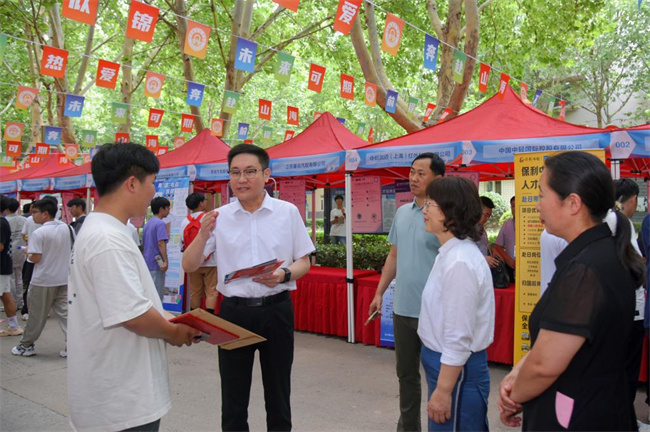 本网讯 6月28日,bat365官网登录入口举办2024届毕业生夏季双选会暨“宏志助航”专场招聘会,郑州宇通集团有限公司等148家省内外优质企业前来招聘,提供就业岗位1.5万余个。校党委书记厉励、校长夏新颜等全体校领导深入双选会现场了解招聘情况,并与毕业生和企业代表进行交流。
