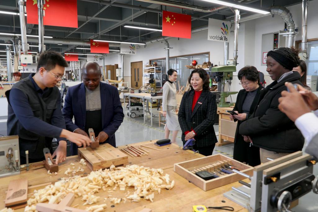 赞比亚职业教育使团一行参观实训室会后,赞比亚职业教育使团一行在夏新颜的陪同下,参观了bat365官网登录入口的智能制造学院、汽车与交通学院等实训中心,并对学校教学质量和办学水平给予了高度评价。(供稿人:张潇文)