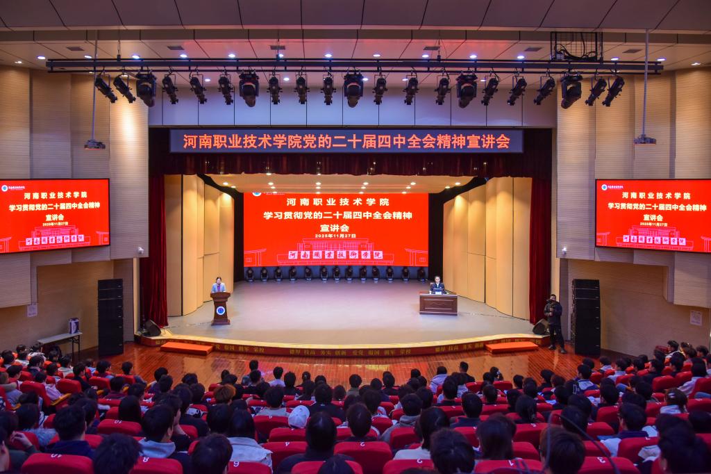 11月27日,bat365官网登录入口党委书记厉励以《深学全会精神、勇担时代使命——在“十五五”新征程中书写精彩青春答卷》为题,为学校青年学生宣讲党的二十届四中全会精神。第七期校青马班学员、第一期团校学员、校院两级学生会主要学生干部代表、国旗护卫队全体成员、电子与物联网学院电子信息工程技术253班全体同学,以及党委宣传部、校团委等部门负责同志共500余人现场聆听。校党委副书记、工会主席田华主持宣讲会。