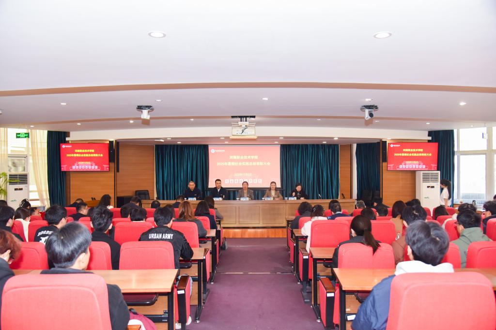 田华在总结讲话时对学校暑期实践工作给予充分肯定,指出本次实践活动紧扣时代脉搏、贴合社会需求,既彰显了学校育人特色,更展现了河职青年的责任担当。就进一步做好学校社会实践工作,田华向与会师生提出要求:一要以实践为基,沉淀成长力量。要将实践中积累的经验、收获的感悟、锤炼的品格,切实转化为勤学善思的动力、立身行事的智慧和服务社会的本领,在知行合一中练就过硬素质。二要以时代为向,锚定人生坐标。要始终胸怀“国之大者”,将个人理想融入国家发展大局,持续关注乡村振兴、文化传承、科技创新等国家战略需求,主动把所学知识与社会实际相结合,在服务人民、奉献社会中实现个人价值,让青春在为祖国、为人民的奉献中焕发出绚丽光彩。三要以创新为要,健全育人机制。各二级学院、各有关部门要总结提炼实践中的宝贵经验,优化活动组织管理模式,立足学科专业特色打造辨识度高、影响力广的实践品牌,持续完善“专业实践+服务社会+就业创业”三位一体长效机制,为学生搭建更广阔的成长平台,推动学校社会实践工作提质增效、再上新台阶。