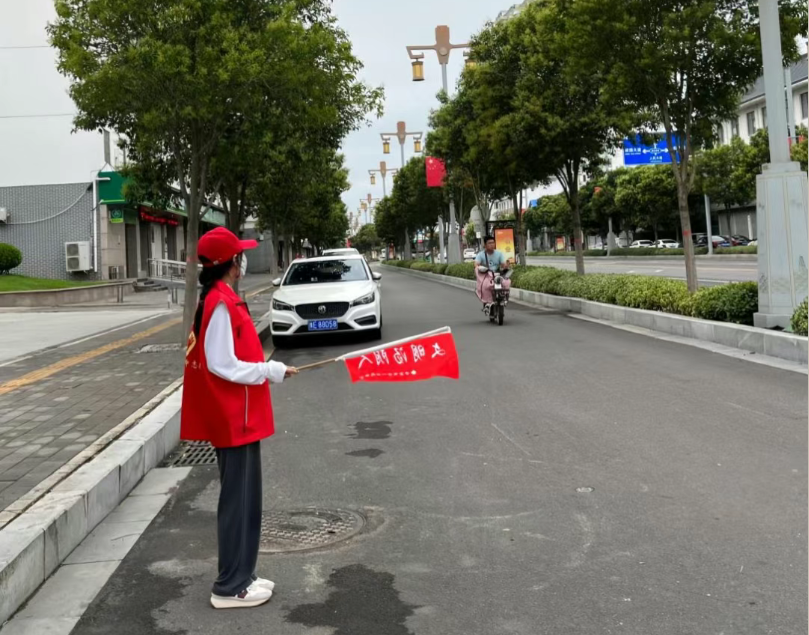 声乐243班学生刘舒雨,手持引导旗,于路口邂逅暑期社会实践的温暖诗行。身着红马甲、手持引导旗站在路口,她开启了独特的社会实践之旅。起初,她以为这份维持秩序的工作很简单,但真正站在车水马龙的路口才发现并非如此。遇到闯红灯的行人,快速上前礼貌劝阻;碰到问路的市民,她耐心指引方向。在这个过程中,她体会到交通秩序的重要性,每一次成功引导行人、阻止不文明行为都让她非常有成就感。她也看到交警们无论烈日还是风雨都坚守岗位保障道路顺畅。