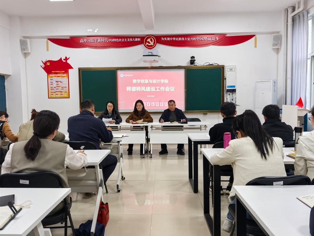 10月9日下午,学校数字创意与设计学院在党建活动室召开师德师风建设专题会,以“强化师德修养、践行育人使命”为核心,贯彻落实新时代高校师德师风建设要求。学院领导班子及全体教职工参会。