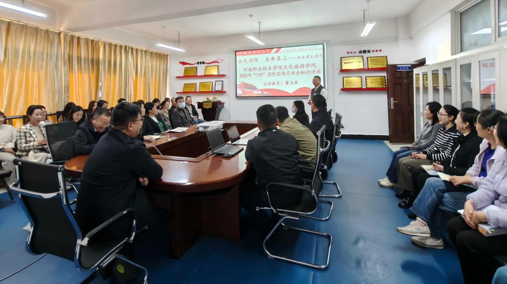 11月13日下午,学校文化旅游学院特邀河南省消防协会曹玉臣教员,在笃行楼630教室开展消防安全专题培训,旨在落实学校“119消防宣传月”工作要求,进一步提升师生消防安全意识和应急处置能力。