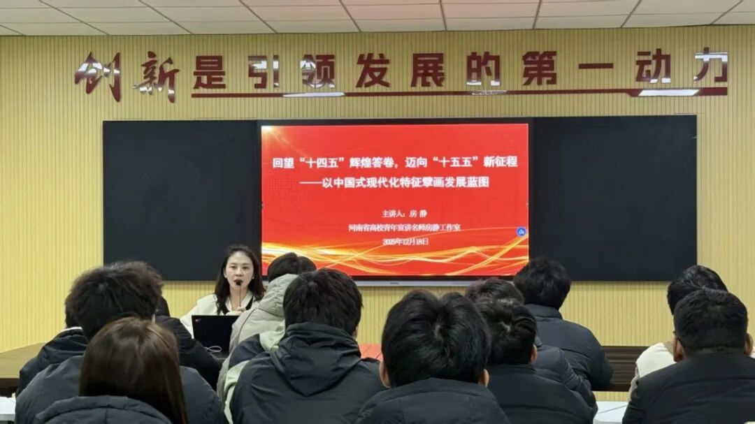12月18日下午,学校汽车与交通学院在敏行楼509会议室举办党的二十届四中全会专题宣讲会。学院党总支书记、河南省高校青年宣讲名师工作室主持人房静担任主讲,86名入党积极分子参与学习。